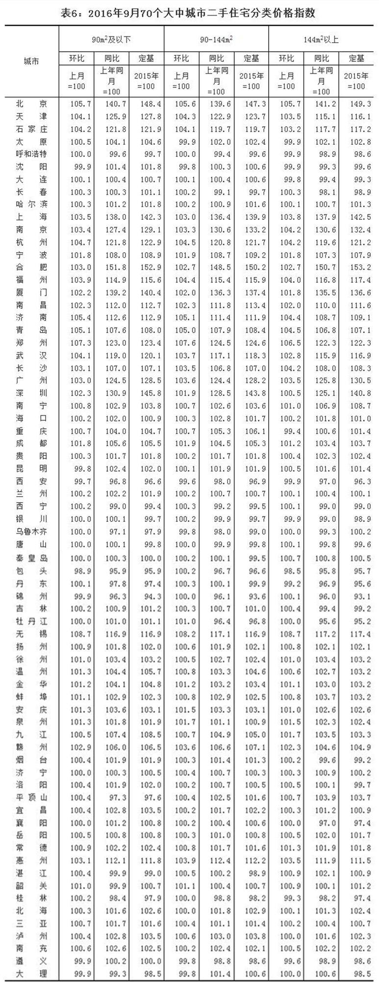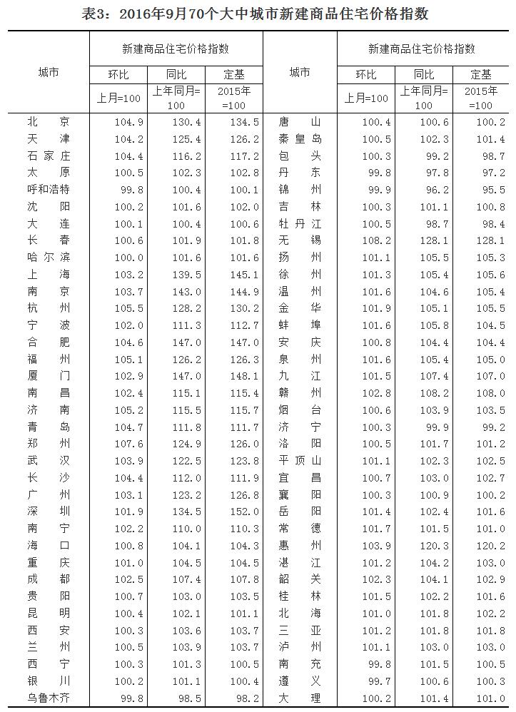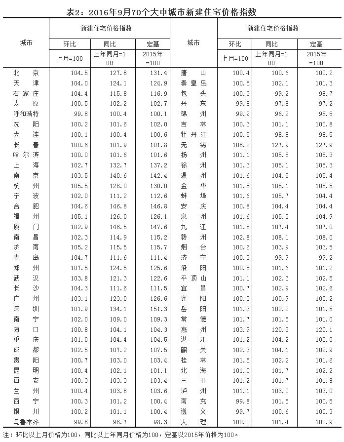 2016年9月份70個大中城市及10月上半月1