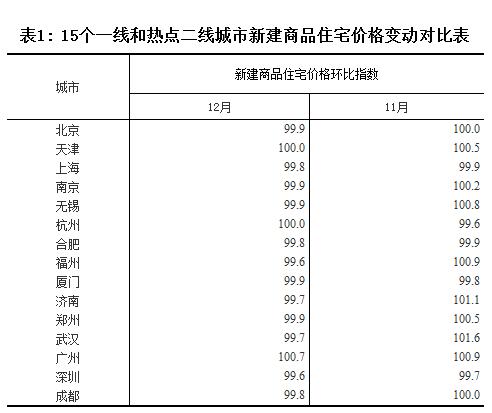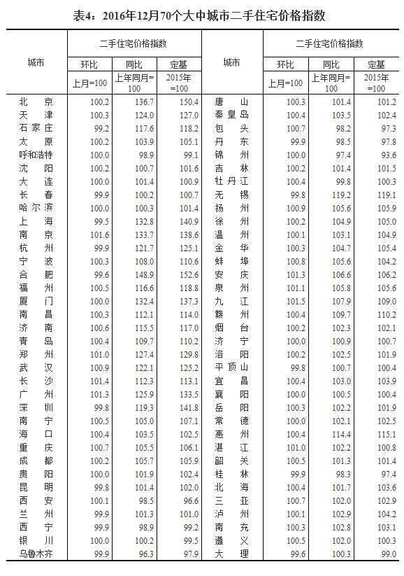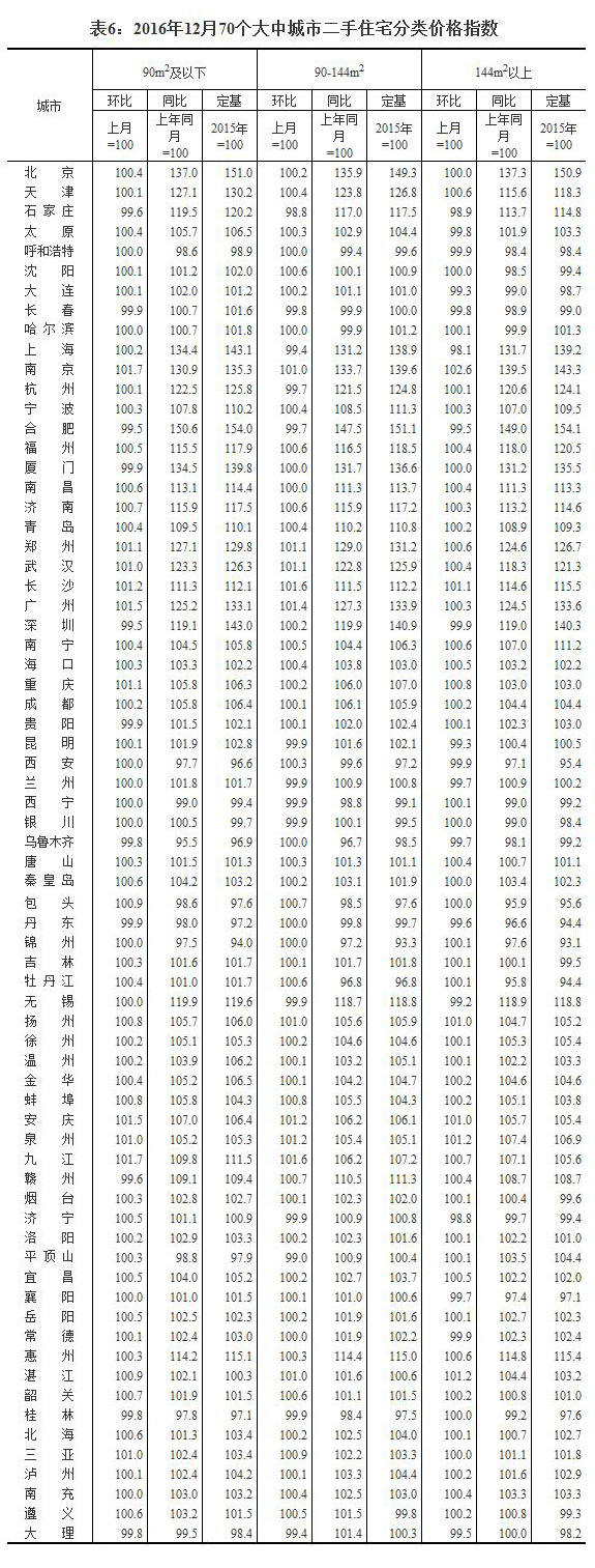 2016年12月份70個(gè)大中城市住宅銷售價(jià)格變動(dòng)情況