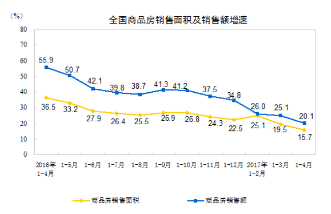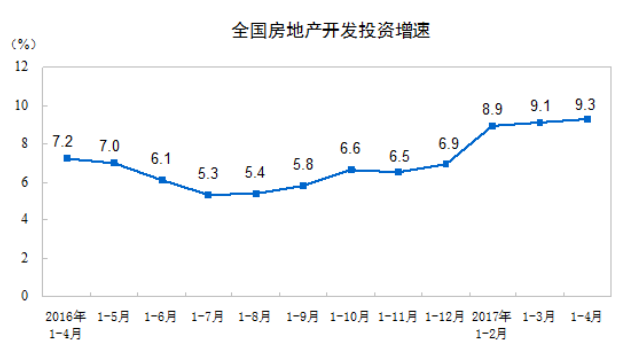 2017年1-4月份全國(guó)房地產(chǎn)開發(fā)投資和銷售情況