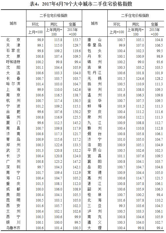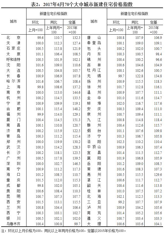 2017年6月份70個大中城市住宅銷售價格變動情況