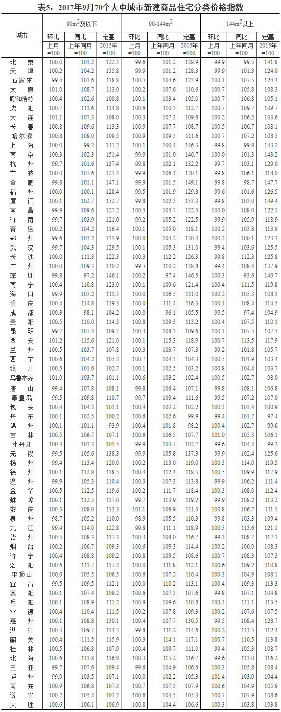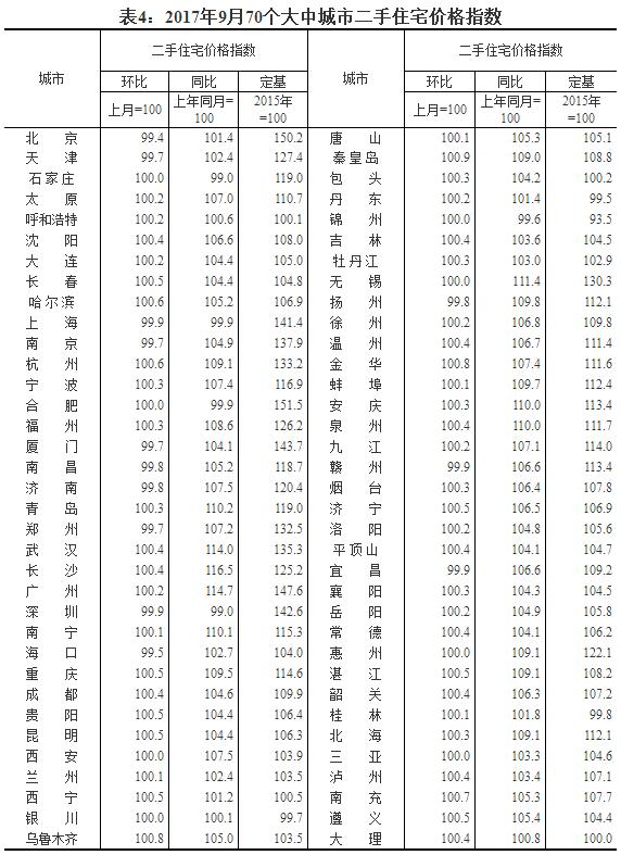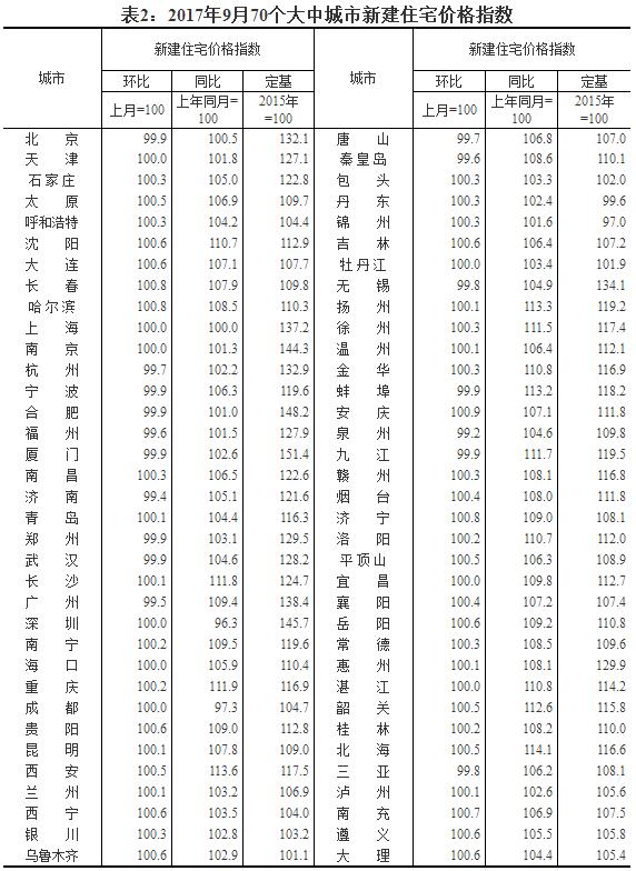 2017年9月份70個(gè)大中城市住宅銷售價(jià)格變動(dòng)情況