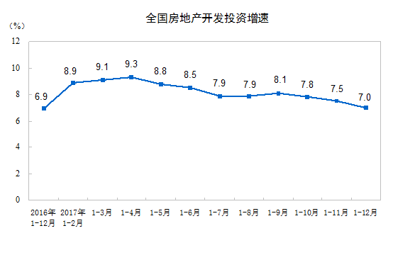 2017年,全國房地產(chǎn)開發(fā)投資109799億元,比上年名義增長7.0%,增速比1-11月份回落0.5個百分點。其中,住宅投資75148億元,增長9.4%,增速回落0.3個百分點。住宅投資占房地產(chǎn)開發(fā)投資的比重為68.4%。
