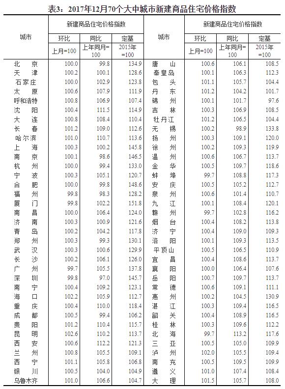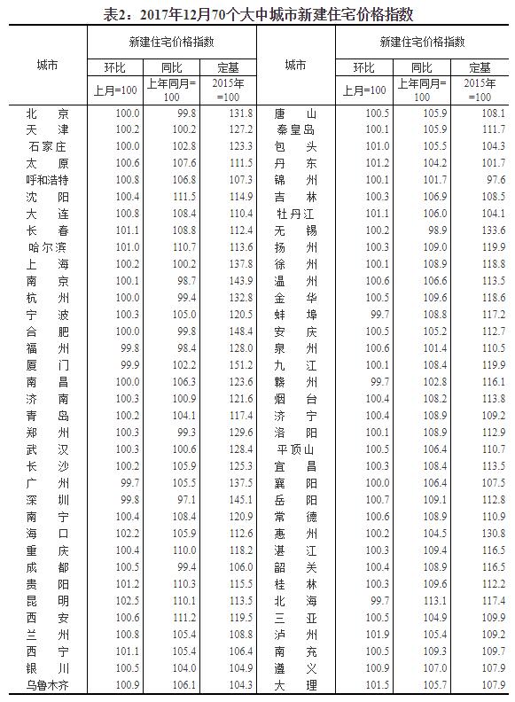2017年12月份70個大中城市住宅銷售價格變動情況