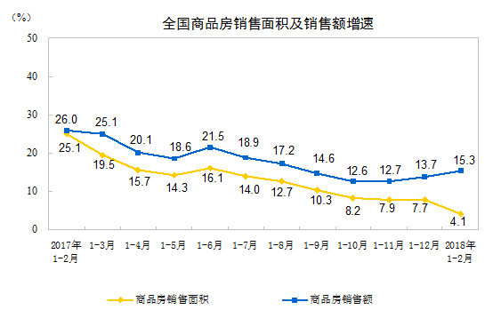 2018年1-2月份全國房地產開發投資和銷售情況