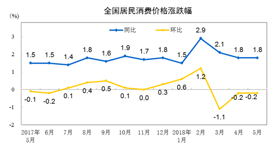 2018年5月份居民消費價格同比上漲1.8%