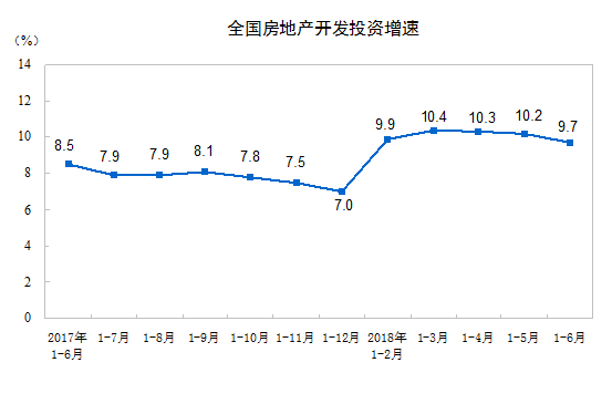 2018年1-6月份,全國房地產(chǎn)開發(fā)投資55531億元,同比名義增長9.7%,增速比1-5月份回落0.5個百分點。其中,住宅投資38990億元,增長13.6%,增速回落0.6個百分點。住宅投資占房地產(chǎn)開發(fā)投資的比重為70.2%。