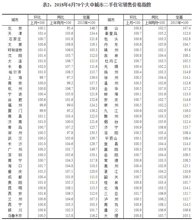 2018年6月份70個大中城市住宅銷售價格變動情況