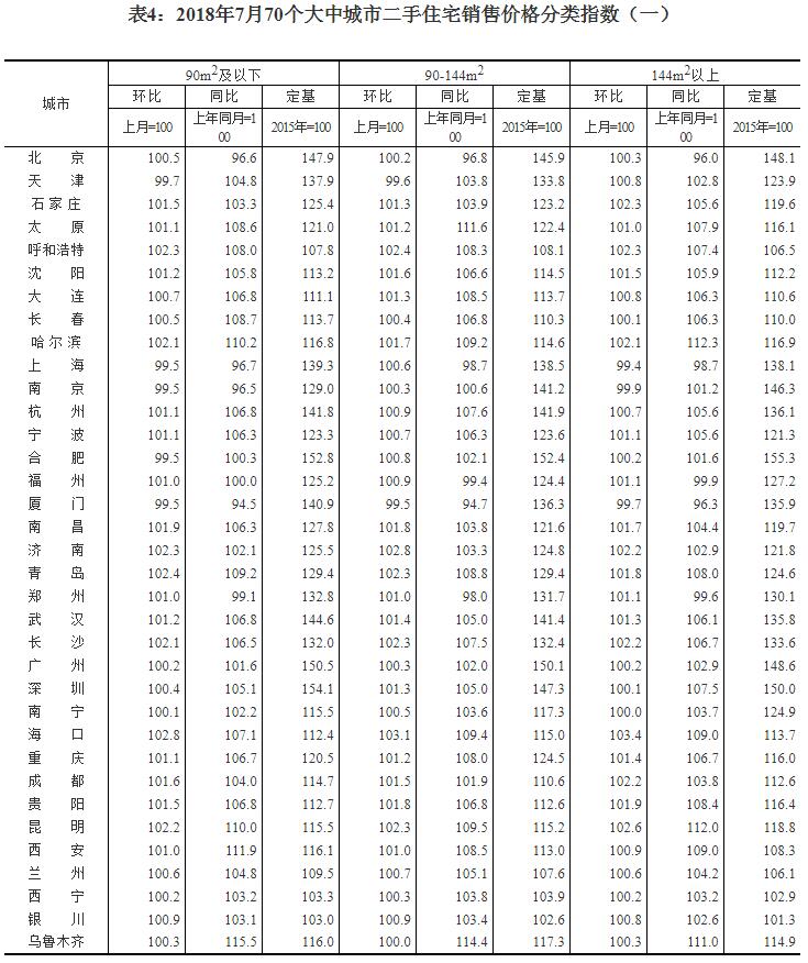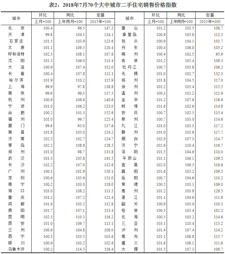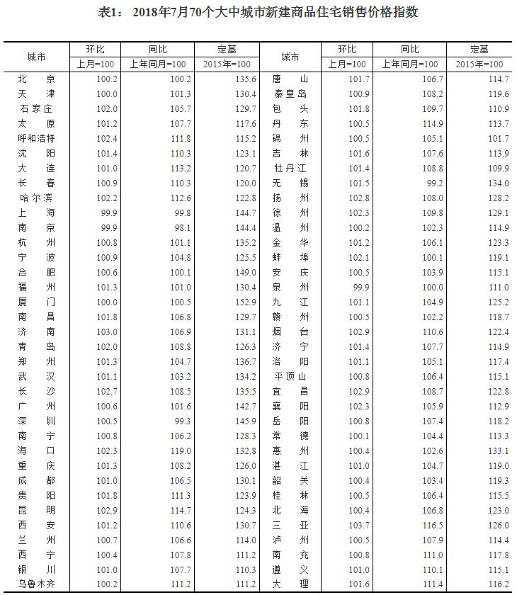 2018年7月份70個大中城市住宅銷售價格變動情況