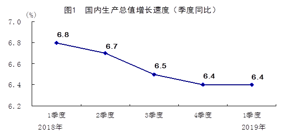 2018年各季度及2019年一季度GDP環比增速分別為1.5%、1.7%、1.6%、1.5%和1.4%。