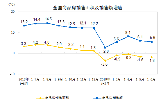 2019年1-6月份全國(guó)房地產(chǎn)開(kāi)發(fā)投資和銷(xiāo)售情況