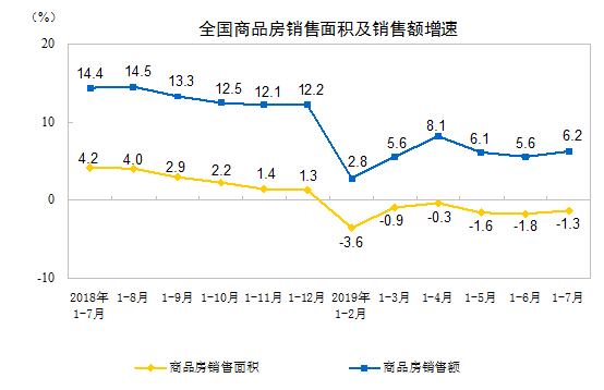 2019年1-7月份全國房地產開發投資和銷售情況