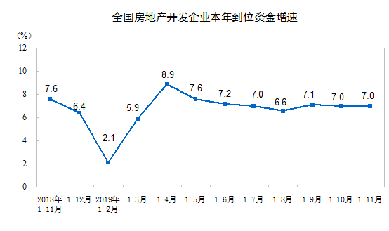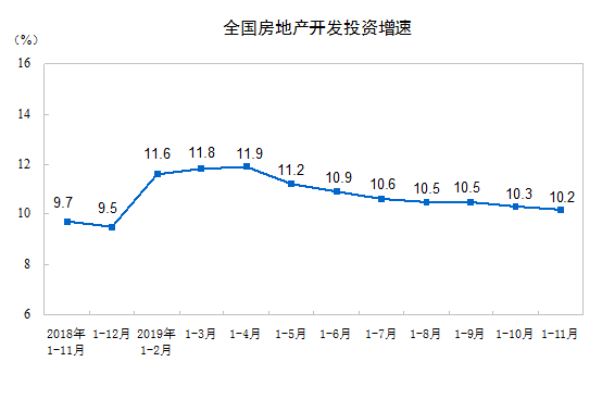 2019111月份,全國房地產開發投資121265億元,同比增長10.2%,增速比110月份回落0.1個百分點。其中,住宅投資89232億元,增長14.4%,增速回落0.2個百分點。