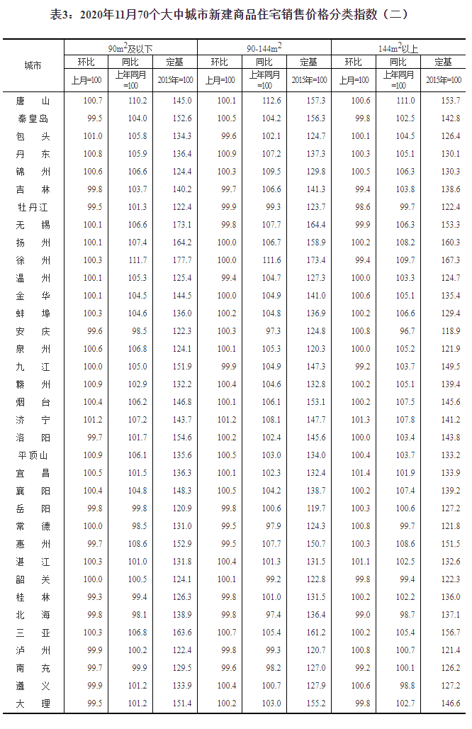 2020年11月份70個大中城市商品住宅銷售價格變動情況