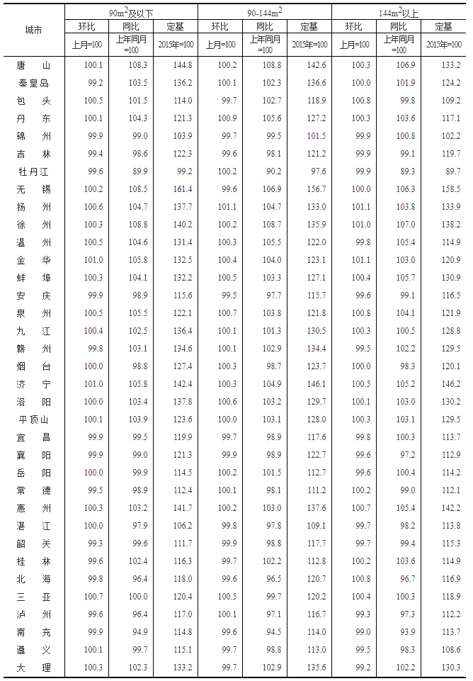3.價格指數的計算方法詳見中國統計信息網《住宅銷售價格統計調查方案》。