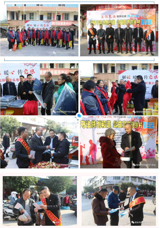 為深入推進(jìn)普法宣傳工作,增強(qiáng)全民法治觀念,深刻落實(shí)“我為群眾辦實(shí)事 解憂暖心傳黨恩”實(shí)踐活動,將房地產(chǎn)行業(yè)的房屋租購的相關(guān)政策知識和冬日的溫暖送到群眾身邊,在我國第八個(gè)“國家憲法日”到來之際,中共南充市房地產(chǎn)中介協(xié)會支部委員會,攜南充市房地產(chǎn)糾紛人民調(diào)解委員會、南房中協(xié)理事單位南充市高坪區(qū)新家房產(chǎn)信息有限公司,聯(lián)合中共南充市房地產(chǎn)管理局高坪辦事處支部委員會、中共南充市高坪區(qū)清溪街道辦事處龍頭寺村黨總支部委員會,于12月2日上午,在“高坪區(qū)龍頭寺村”,組織開展了一場“宣傳憲法 租購住房 漲知識,尊禮守法共創(chuàng)和諧 法治公益宣傳進(jìn)鄉(xiāng)村”宣傳活動,同時(shí)還為龍頭寺村15戶困難群眾送上來防寒服、米、油、紅圍巾等物資。