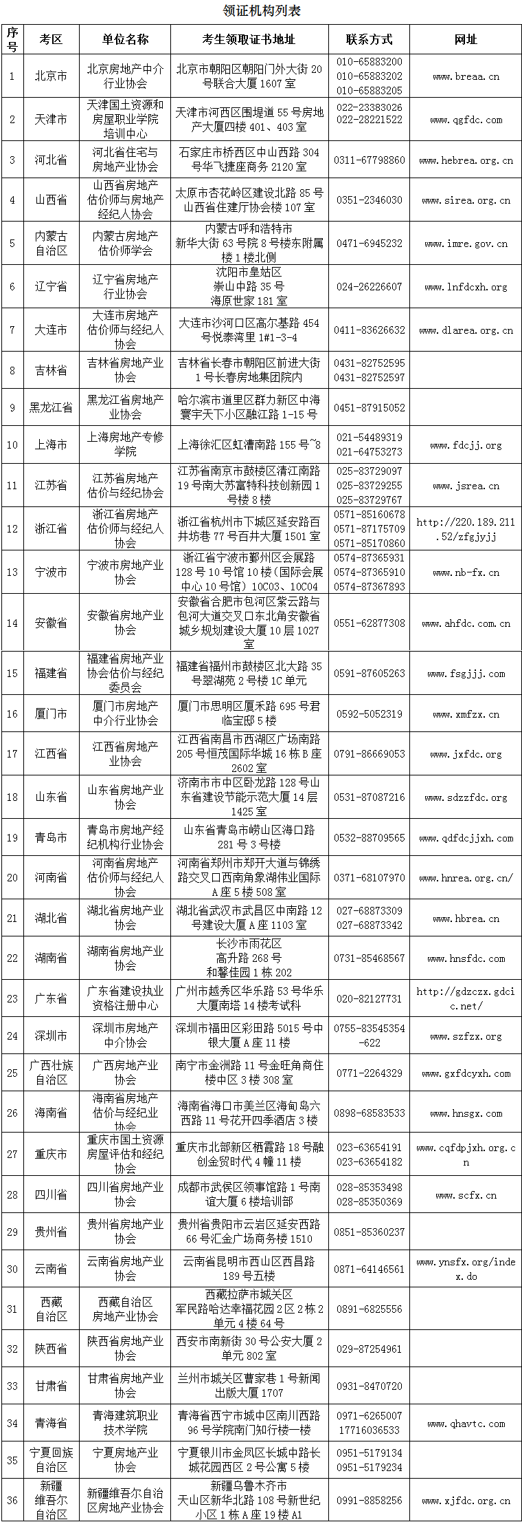 2019年下半年考試合格人員的中華人民共和國房地產經紀專業人員職業資格證書(以下簡稱資格證書)已寄送至地方考試實施機構。各省(自治區、直轄市)領證機構名稱、地址及聯系方式見附表。