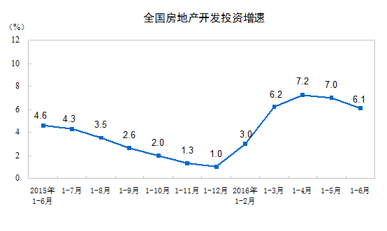 2016年1-6月份全國房地產開發投資和銷售情況