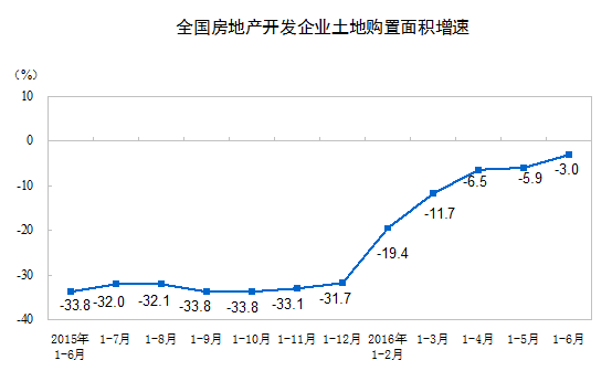 1-6月份,房地產開發企業土地購置面積9502萬平方米,同比下降3.0%,降幅比1-5月份收窄2.9個百分點;土地成交價款3159億元,增長10.2%,增速提高5.5個百分點。