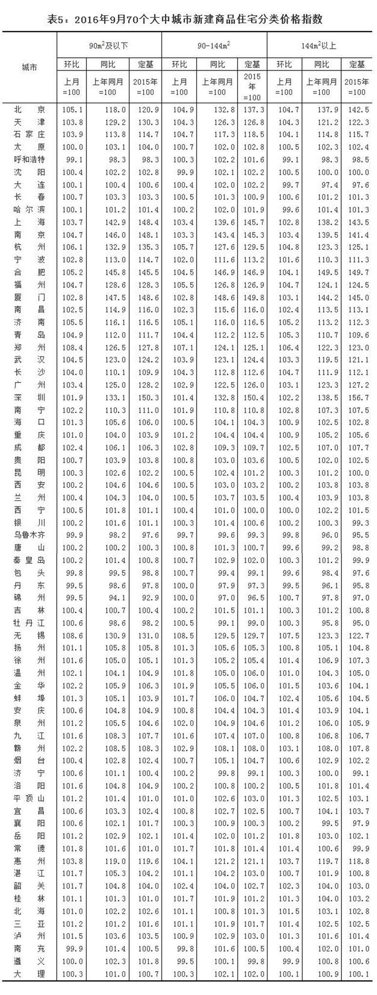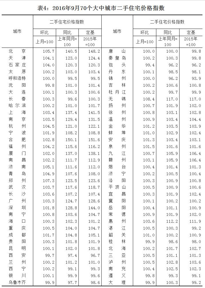 2016年9月份70個大中城市及10月上半月1