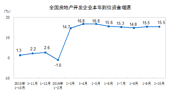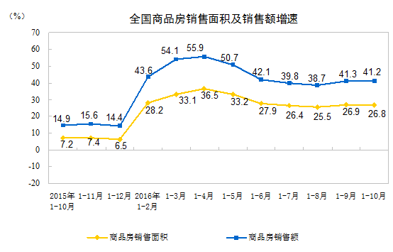 2016年1-10月份全國房地產(chǎn)開發(fā)投資和銷售情況