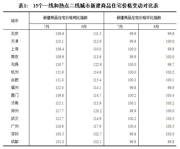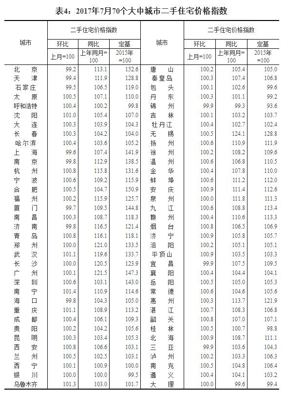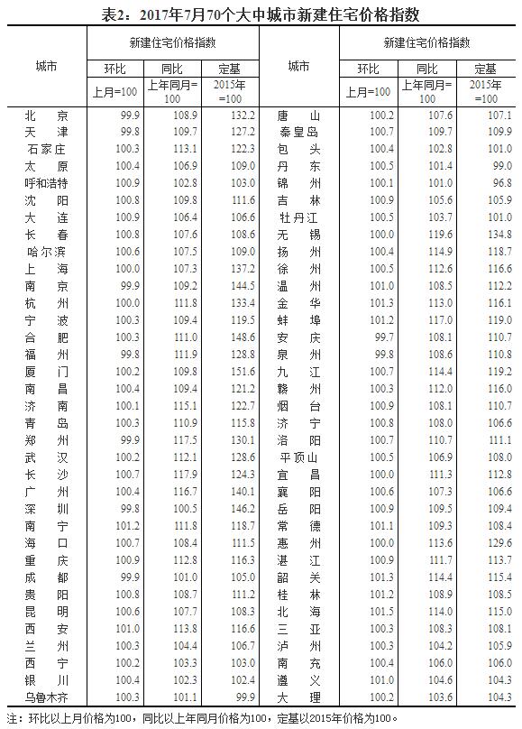 2017年7月份70個大中城市住宅銷售價格變動情況