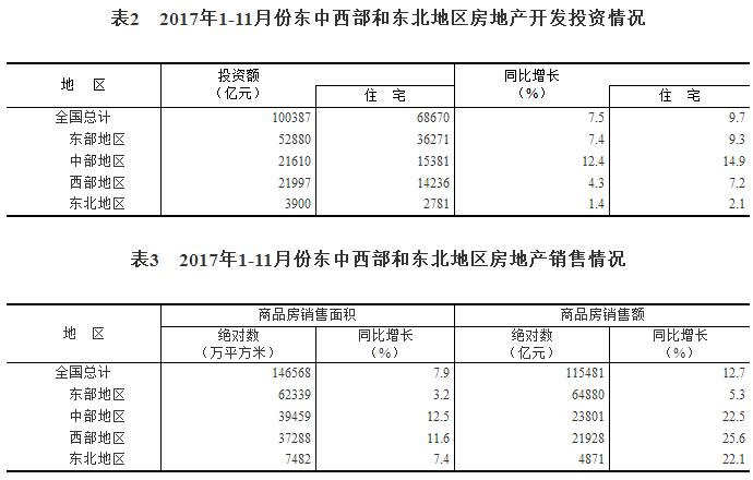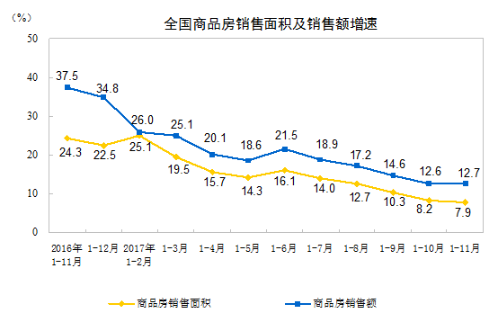 2017年1-11月份全國(guó)房地產(chǎn)開(kāi)發(fā)投資和銷售情況