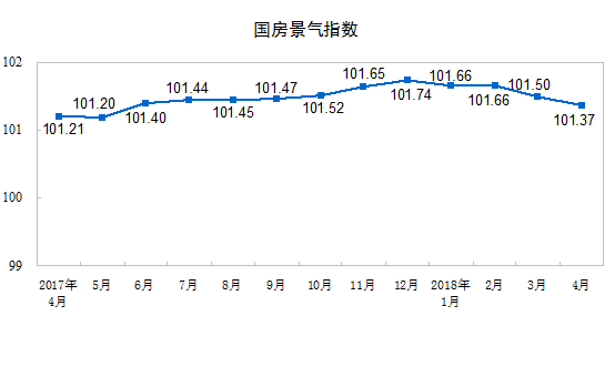 4月份,房地產(chǎn)開發(fā)景氣指數(shù)(簡(jiǎn)稱“國(guó)房景氣指數(shù)”)為101.37,比3月份提高0.13點(diǎn)。