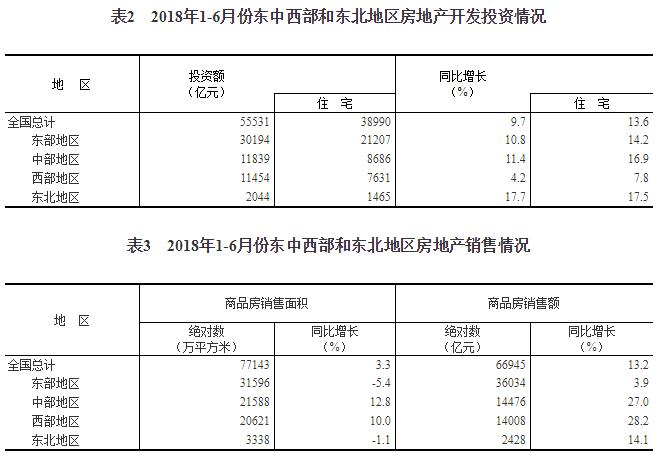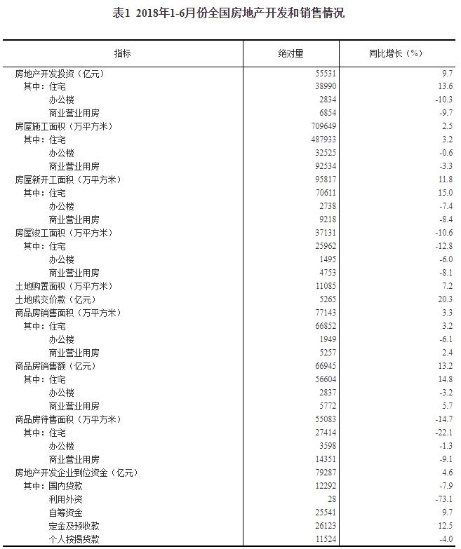 2018年1-6月份全國房地產(chǎn)開發(fā)投資和銷售情況