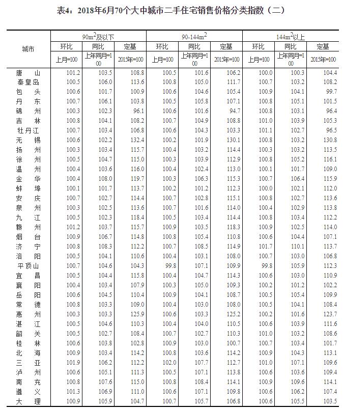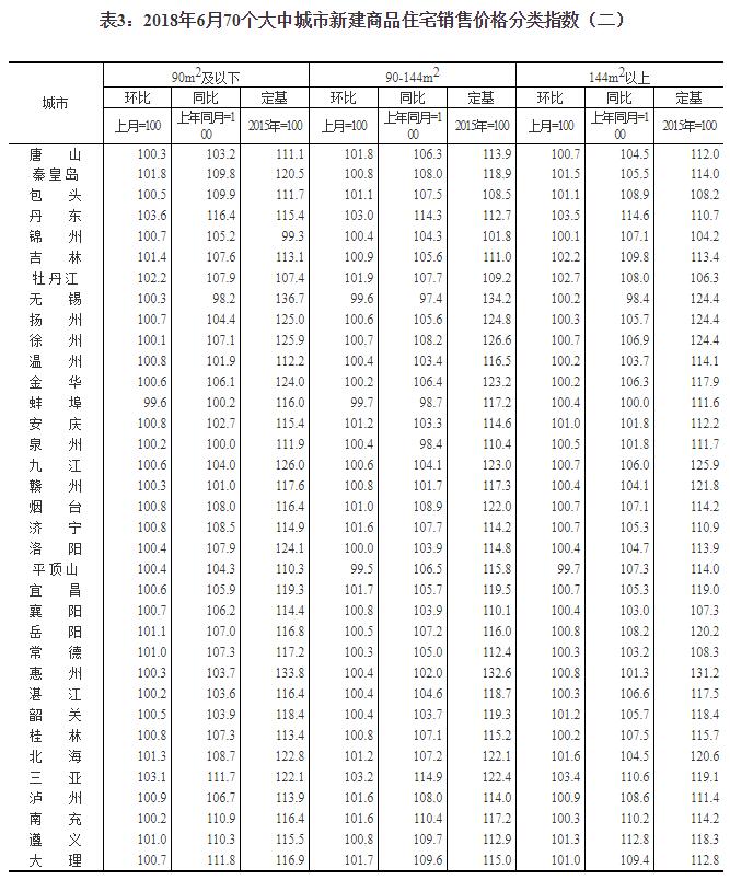 2018年6月份70個大中城市住宅銷售價格變動情況