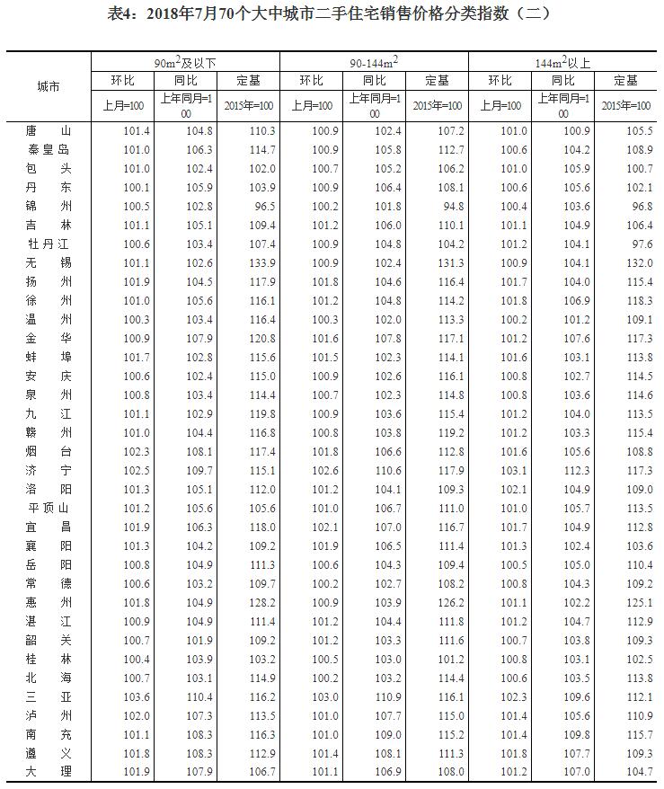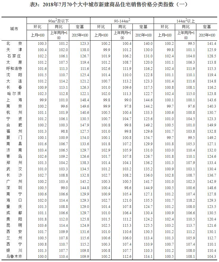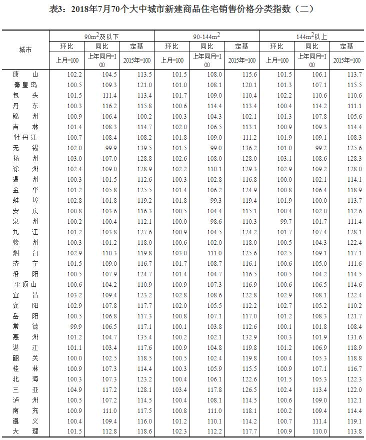 2018年7月份70個大中城市住宅銷售價格變動情況