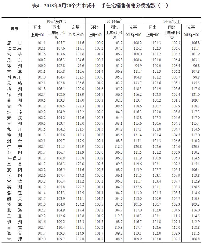 2018年8月份70個大中城市住宅銷售價格變動情況