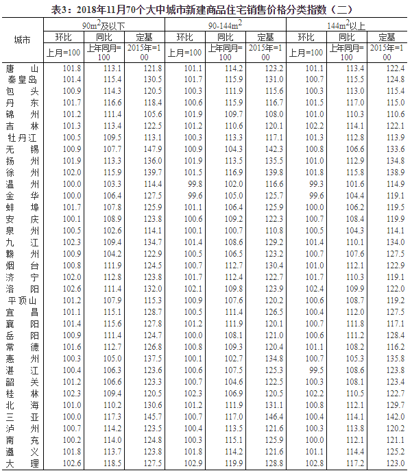 2018年11月份70個大中城市商品住宅銷售價格變動情況