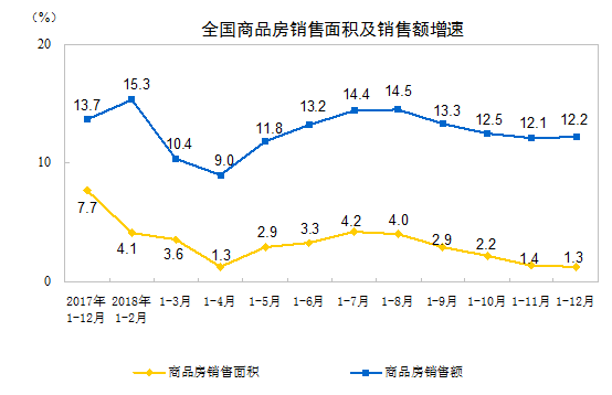 2018年1-12月份全國房地產開發投資和銷售情況