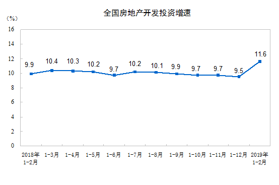 2019年1-2月份,全國房地產(chǎn)開發(fā)投資12090億元,同比增長11.6%,增速比2018年全年提高2.1個(gè)百分點(diǎn)。其中,住宅投資8711億元,增長18.0%,增速提高4.6個(gè)百分點(diǎn)。住宅投資占房地產(chǎn)開發(fā)投資的比重為72.1%。