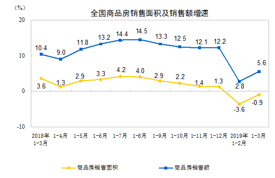 2019年1-3月份全國房地產開發投資和銷售情況