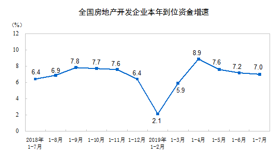 2019年1-7月份全國房地產開發投資和銷售情況