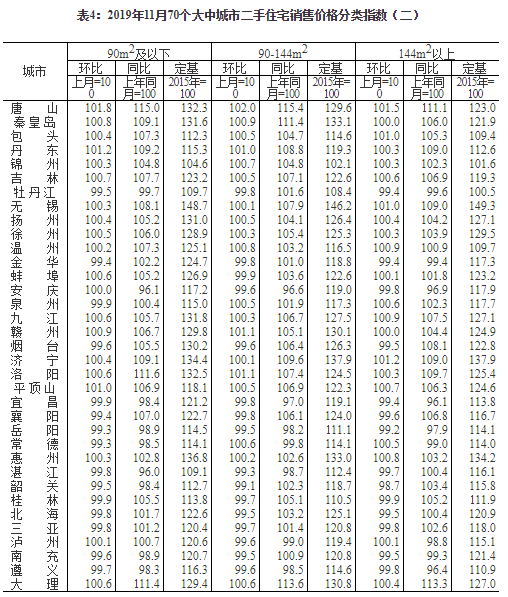 2019年11月份70個大中城市商品住宅銷售價格變動情況