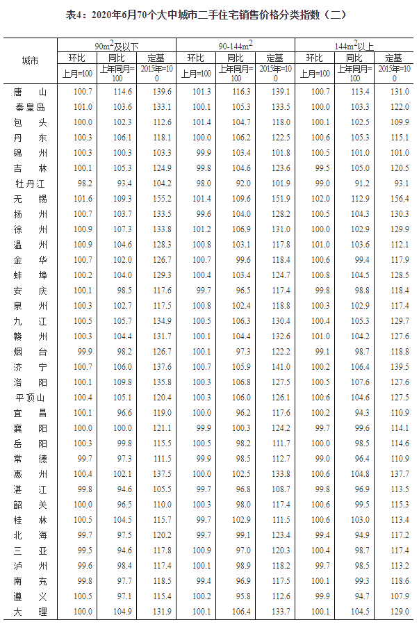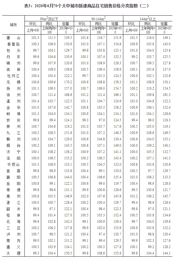 2020年6月份70個(gè)大中城市商品住宅銷售價(jià)格變動(dòng)情況