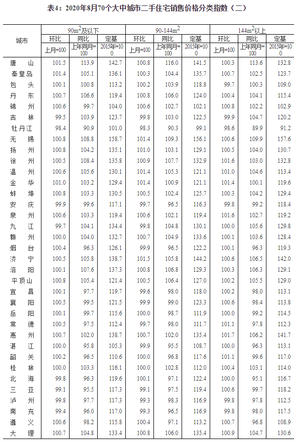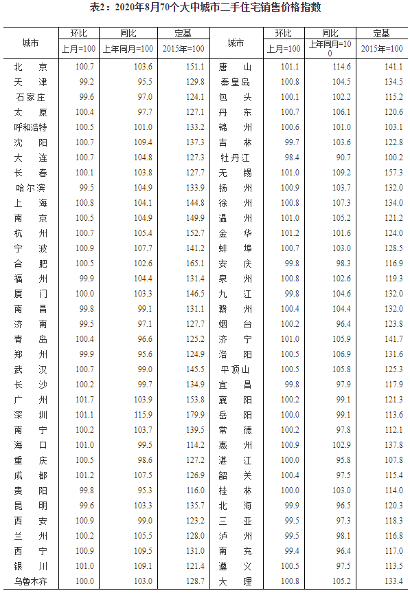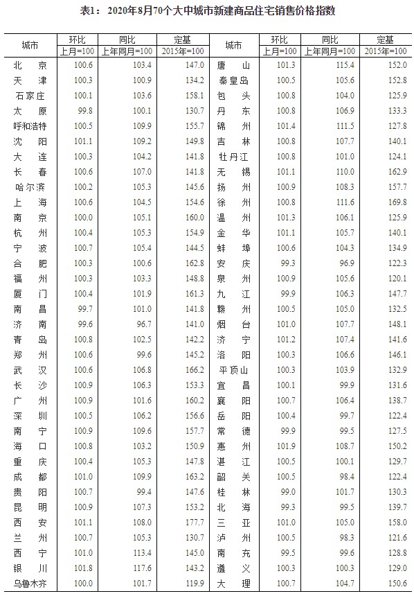 2020年8月份70個(gè)大中城市商品住宅銷售價(jià)格變動(dòng)情況